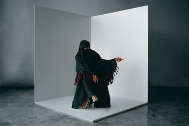 بعد الكبت القاتل جداً بسبب "كوفيد-19" قررنا انا و الصديقة "شذى الطيب" ، في صنع سلسلة صور فنية لمجموعة من العبايات و كان الموضوع فني و قوي جدا ، وهنا نشاهد احد نتائج السلسلة "الزاوية"