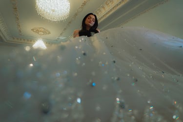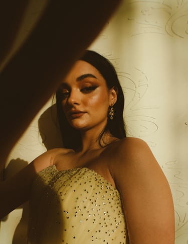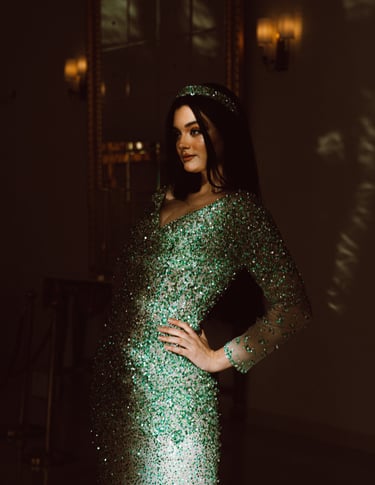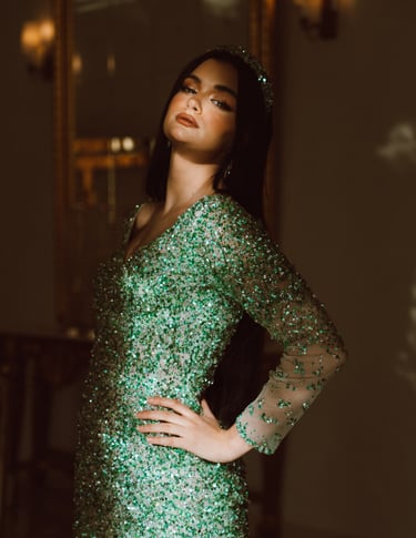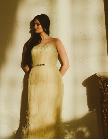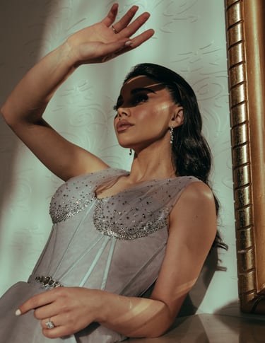 " تتميز دائماً بالأزياء الفاخرة و التصاميمة الراقية للغاية و هنا كانت احد الجلسات التي كانت مختلفة بالنسبة لي و كانت تجربة لا تنسى في صنع الجمال