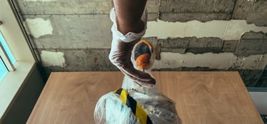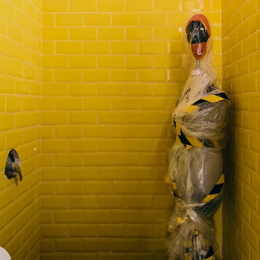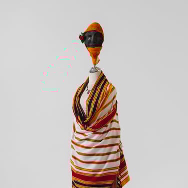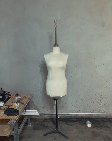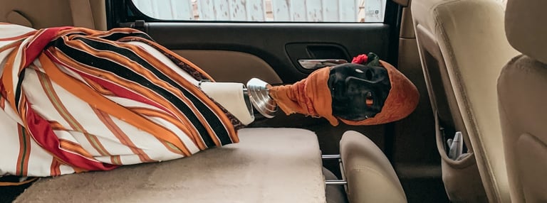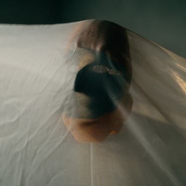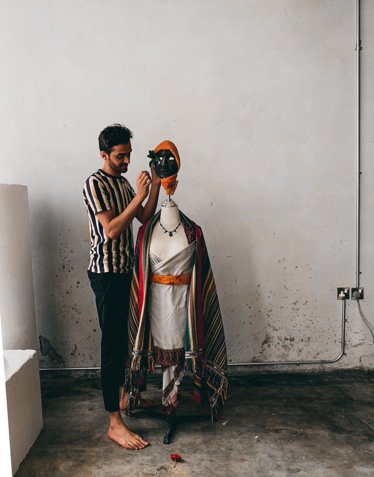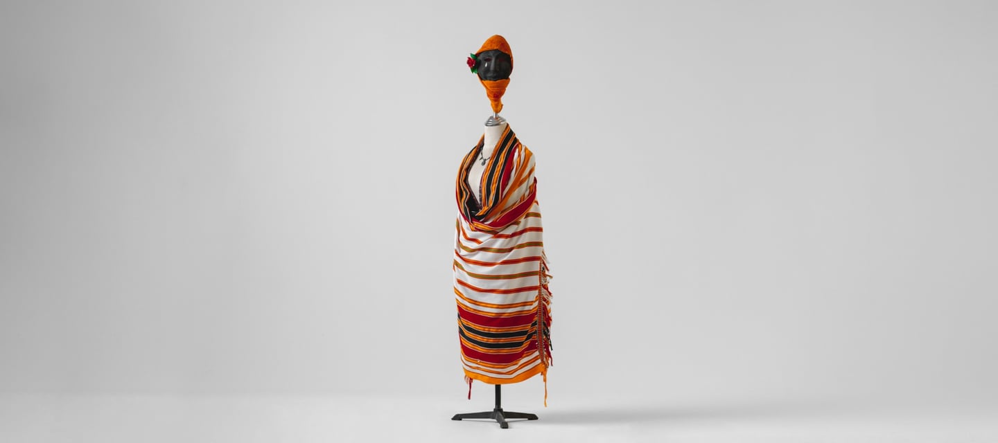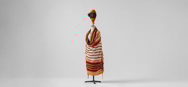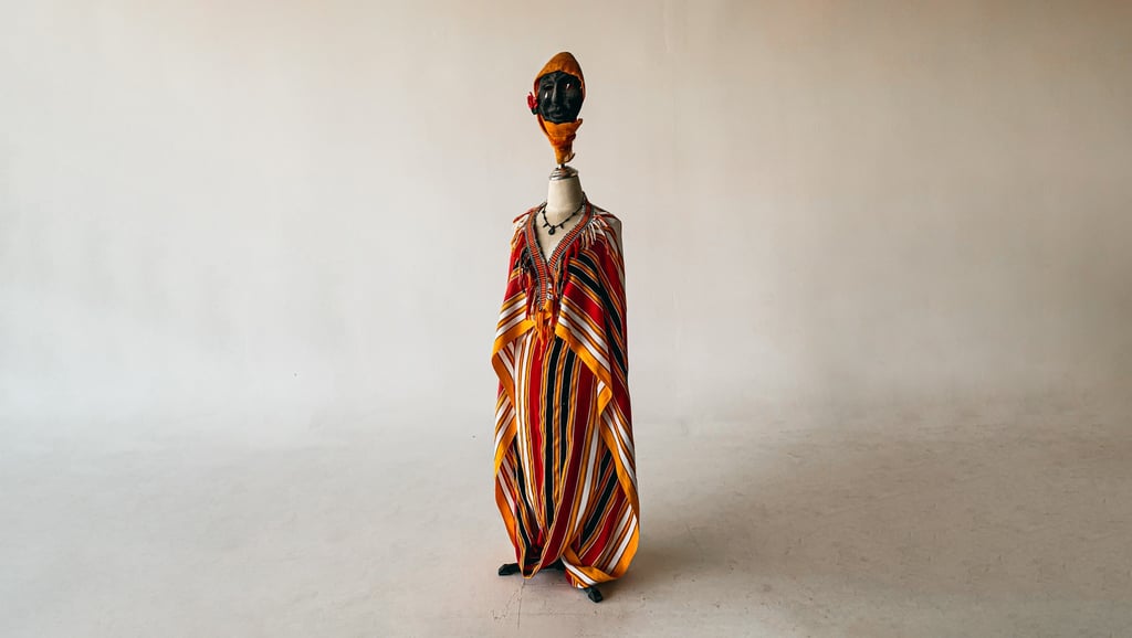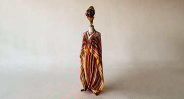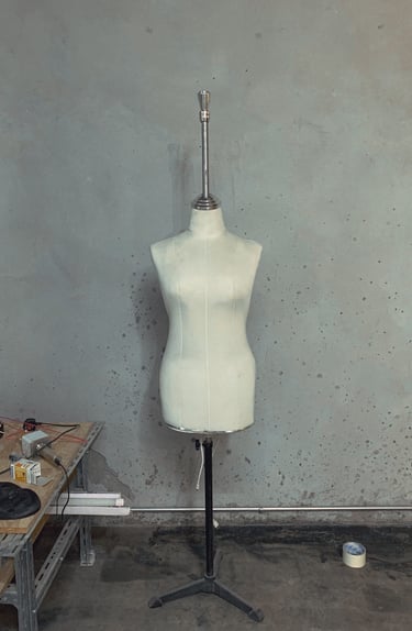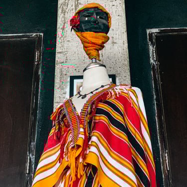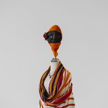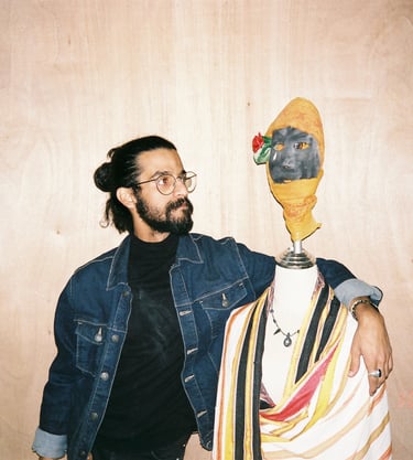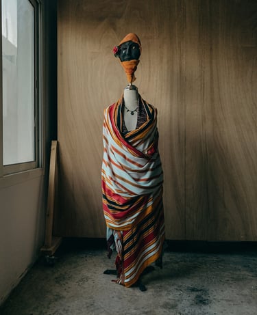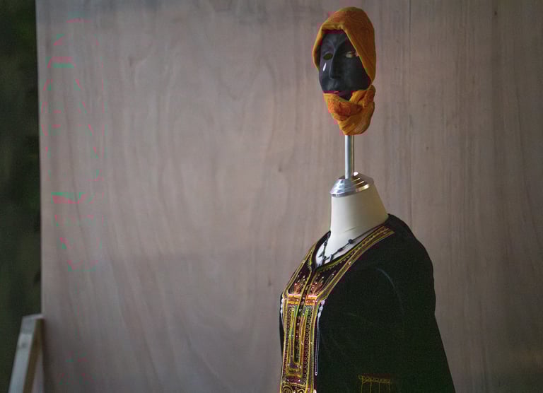 وعند دخولنا لأول مرة في المكان ، وجدت ذاك الجسد الذي لا حول له و قوة ملقى في المكان على الارض ، ومن دون شعور اخذت بها و رفعتها والبستها القناع الذي كان جزء من اول عمل فني لي وهو "منتصف" والبستها المنديل الأصفر كي تنتمي لبيئتي و ولدت كيان في 19-12-2019